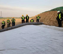 +more膨潤土防水毯又叫膨潤土墊每平方克重在3000克--6000克之間,屬于重貨因此在鋪設時現場人員在10人左右,材料鋪設后所有人員負責調整相鄰兩卷防水毯搭接30cm-50cm,調整完成后安排一人在搭接重合面撒搭接粉,相鄰兩卷完成后在進行下一卷的鋪設,該兩卷完成后如需回填在鋪設第三卷過程中前面兩卷就可以回填了,形成流水線作業(yè)模…